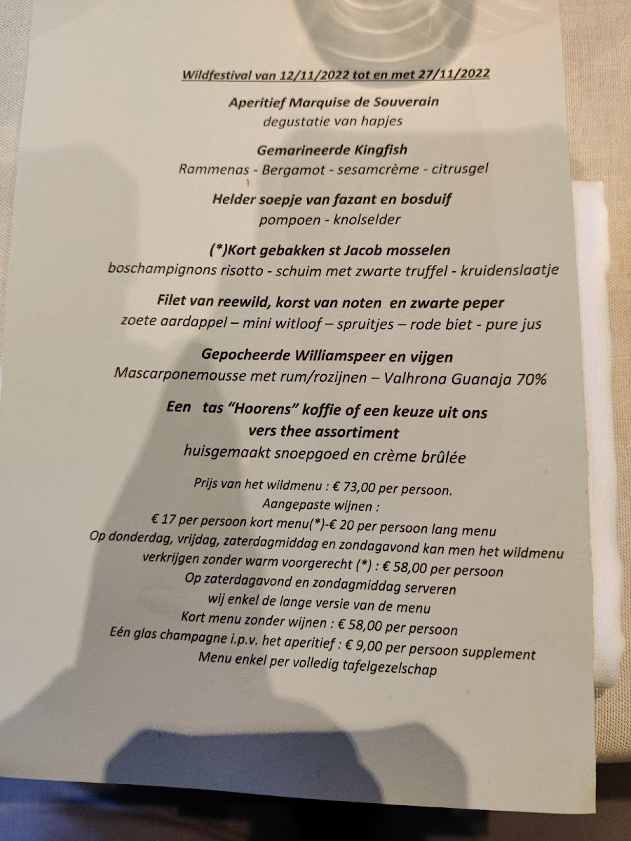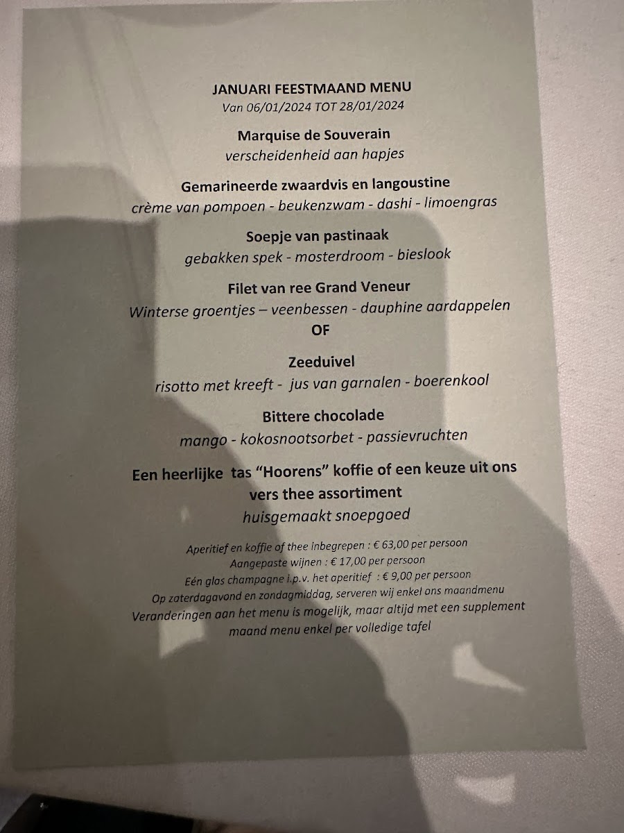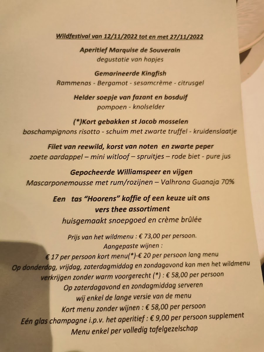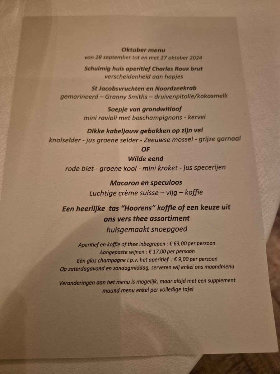 For those who enjoy lighter dishes, the Kort Gebakken St Jacobsmosselen (lightly seared scallops) is an exquisite choice, offering a burst of fresh, oceanic flavors. Alternatively, the Halve Kreeft Met Pasta combines the richness of lobster with pasta, creating a harmonious balance of textures and tastes. The Putternut Pumpkin Soup With Breydel Ham is another popular option, providing a comforting, savory-sweet experience that highlights the flavors of the season.