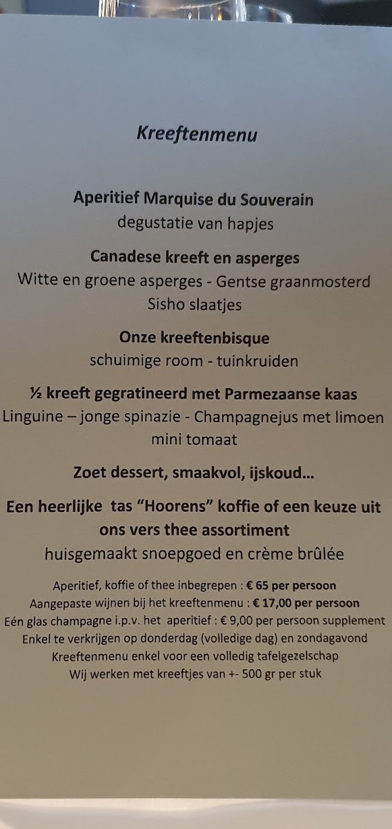 If you’re looking for something to kickstart your meal, the Aperitief Met Degustatie Hapjes Super Lekker offers an aperitif accompanied by a selection of delicious appetizers, ensuring that your taste buds are tantalized from the start. The Salade Van Kreeft (lobster salad) is light yet satisfying, perfect for those seeking a refreshing dish with a touch of luxury.
